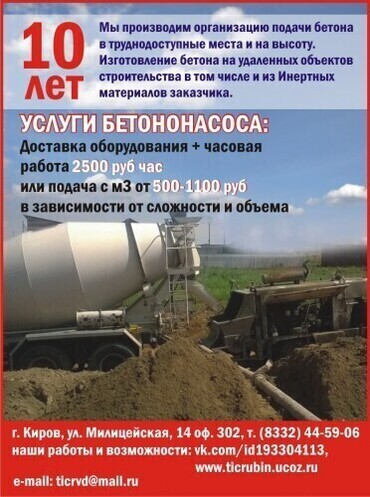 Бетон марки М-200. С доставкой по Кирову и области. Расчет нал и б/н. Выделение НДС. Предоставляем полный пакет документов.