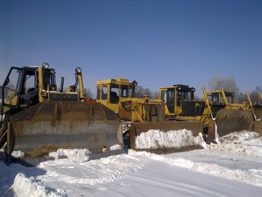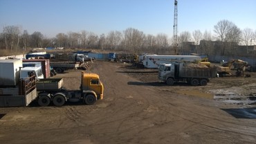 Стоянка для грузовиков, дальномеров, фур, гусеничной спецтехники, тракторов на территории автотранспортного предприятия. Сормовский район